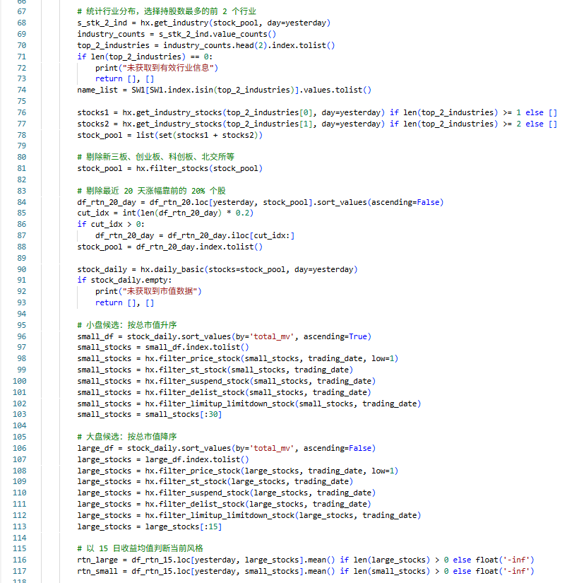 思路并不复杂,是在之前写的一个 行业小市值策略 基础上,加入了市场风格判断: