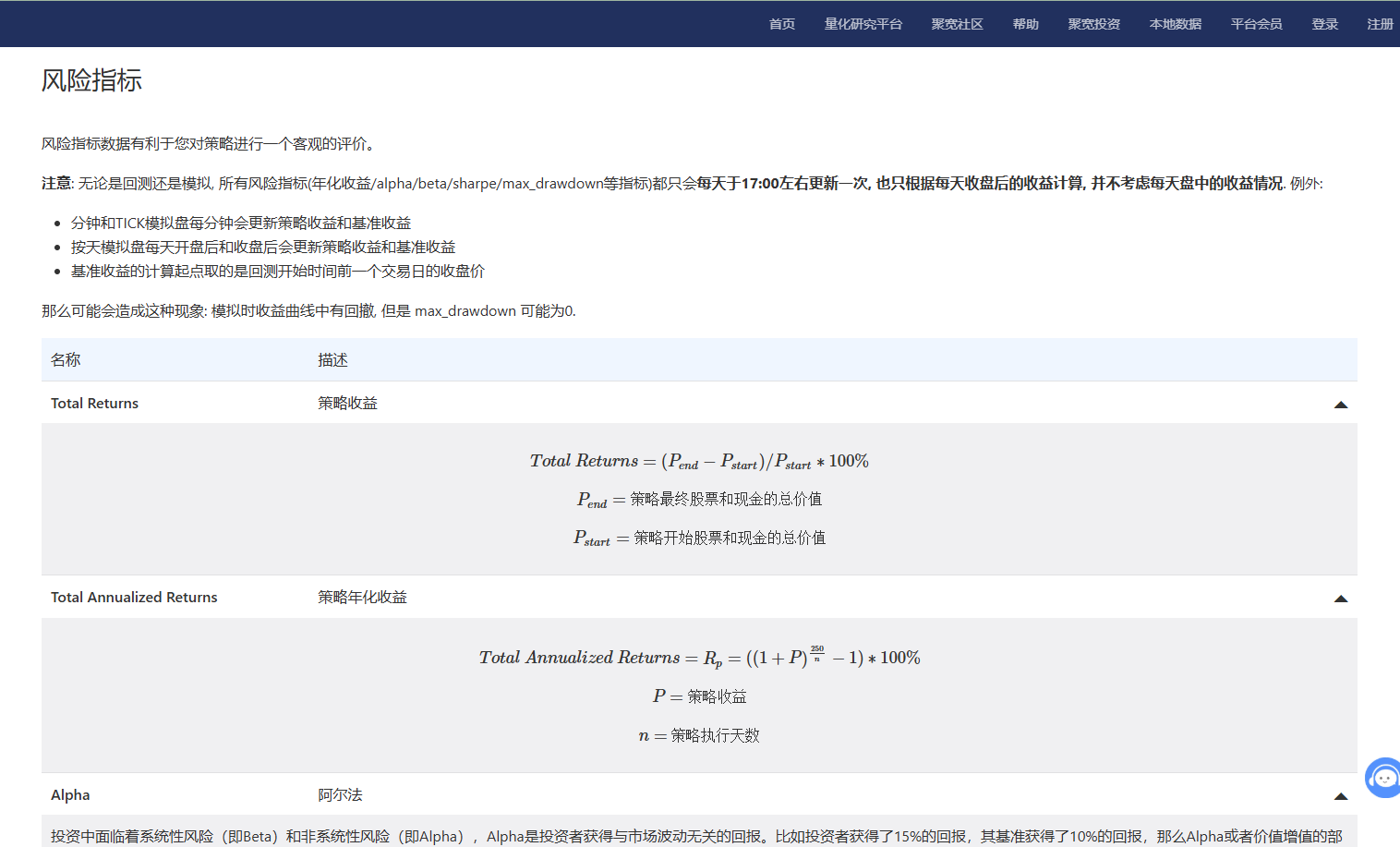 聚宽风险评估指标介绍:https://www.joinquant.com/help/api/help#api:%E9%A3%8E%E9%99%A9%E6%8C%87%E6%A0%87